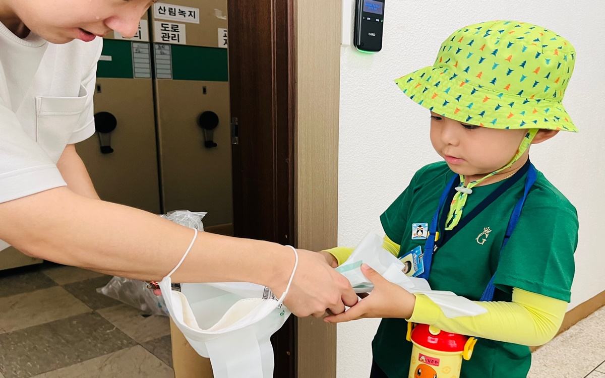 한편 이은주 원장은 “자라나는 우리의 미래인 어린이들에게, 환경의 소중함과 자연을 우리가 지켜야 우리가 살수있다는, 환경보호와 보존에 대해서도, 현장으로 직접가서 체험하도록 하고 있습니다. 인성과 도덕성도 함께 병행해서 가르치고 있느라, 선생님들이 많이 고생하고 있습니다. 제가 많이 미안하게 생각하고 있습니다. 하지만 우리가 해야할 일인 만큼 선생님들도 잘 이해하고, 열심히 가르치고 있습니다.”라며 환하게 웃으며, 처인구청 도시미관과에서, 종량제봉투를 교환하고 있는 아이들에게로 다가가서 보살폈다.