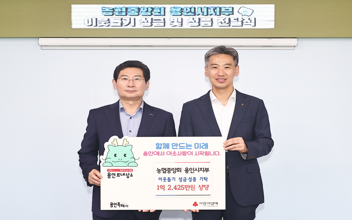 용인특례시(시장 이상일)는 8일 농협중앙회 용인시지부가 1억 2425만원 상당의 이웃돕기 성금과 성품을 기탁했다고 9일 밝혔다.