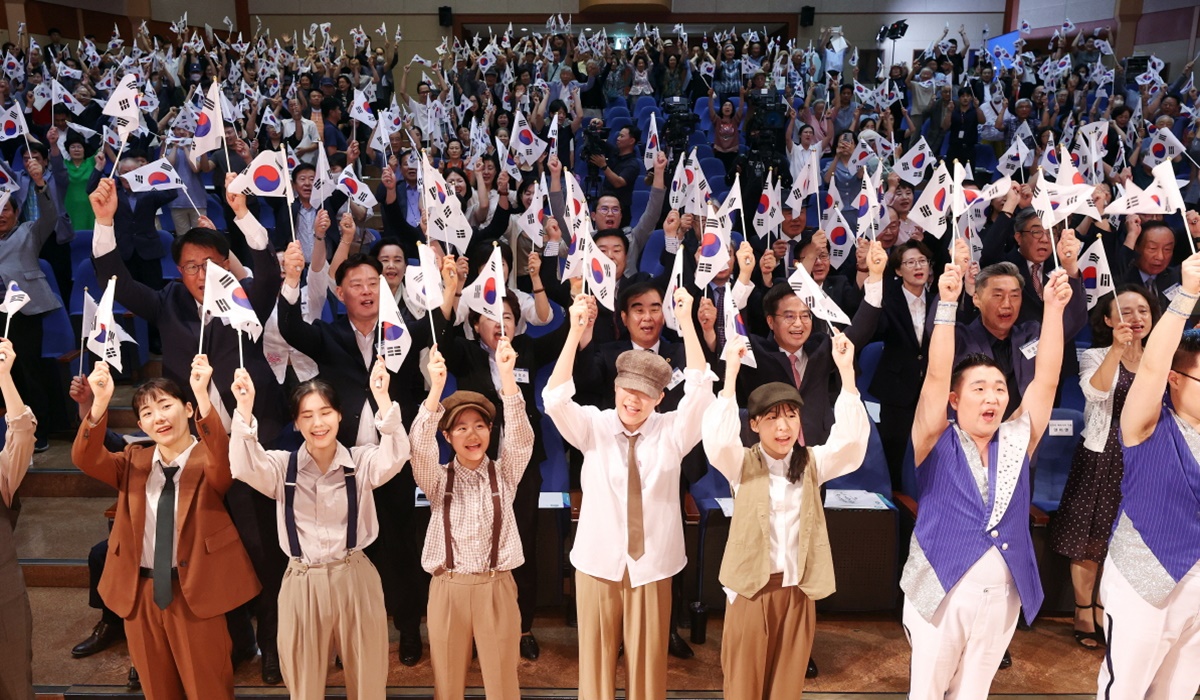 이날 경기도경제과학진흥원에서 열린 행사는 ‘더 큰 대한민국으로 함께 갑시다’라는 구호를 내걸고 기념영상 시청과 독립유공자 포상, 경축공연, 광복절 노래 제창, 만세삼창 순으로 진행됐다.