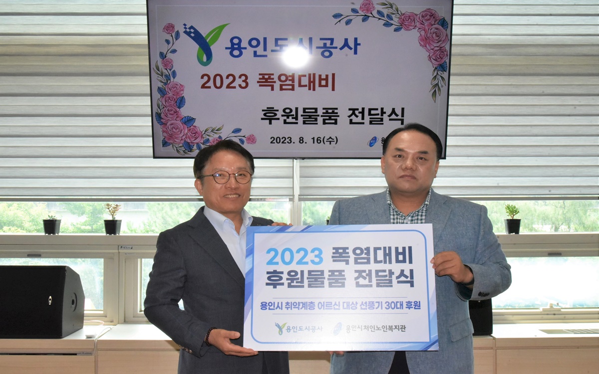 최찬용 용인도시공사 사장은 “무더위에 지친 어르신들이 보다 시원한 여름을 보내시길 바라는 마음으로 준비했다”며 “앞으로도 다양한 활동을 통해 나눔을 실천하는 공사가 되겠다”라고 전했다.