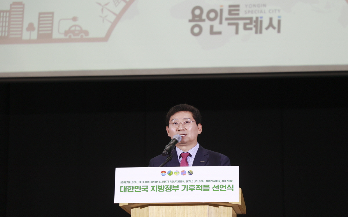 용인특례시(시장 이상일)는 30일 환경부 주최로 열린, ‘대한민국 지방정부 기후적응 선언식’에 이 시장이 참석해, 기후위기에 대응하는 용인의 사례를 발표했다고 31일 밝혔다.