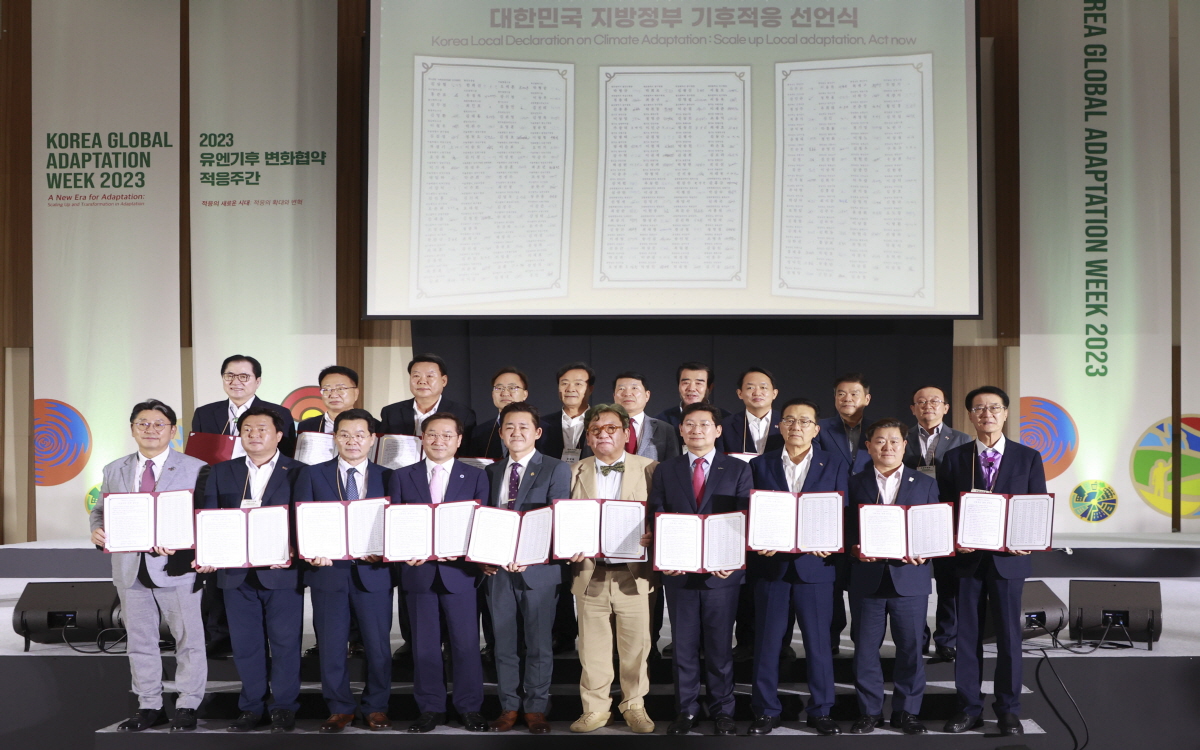 30일 인천 송도 컨벤시아에서 열린 대한민국 지방정부 기후적응 선언식은 ‘지역이 앞장서는 기후적응 Scale up Local Adaptation, Act now(지역의 기후적응 확대, 바로 실천하세요)!’를 모토로 지방정부의 기후적응 실천 선언문 낭독, 우수 정책사례 발표 순서로 진행됐다.