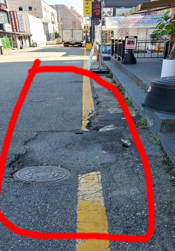 (카메라고발) 큰 빵꾸나서 주저않은 위험한 인도 겸 도로