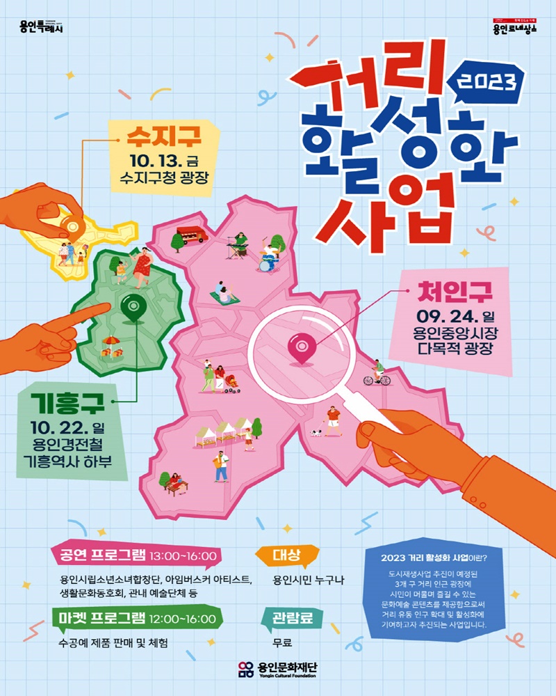 용인문화재단(이사장 이상일)은 용인시 3개 구 거리 활성화를 위한 '2023 거리 활성화 사업' 행사를 총 3회 개최한다고 밝혔다.
