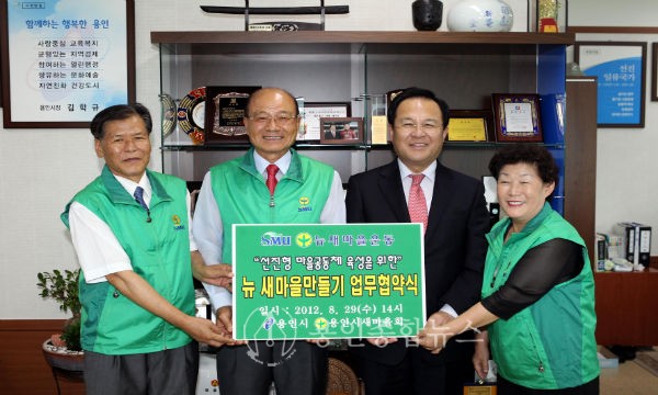 용인시와 용인시새마을회는 이날 업무 협약서를 교환하고 주민이 스스로 계획하고 참여하는 뉴 새마을 운동의 그린, 스마트, 해피마을 만들기의 주민 주도형 선진 마을 공동체 육성을 위해 공동 협력하기로 했다.