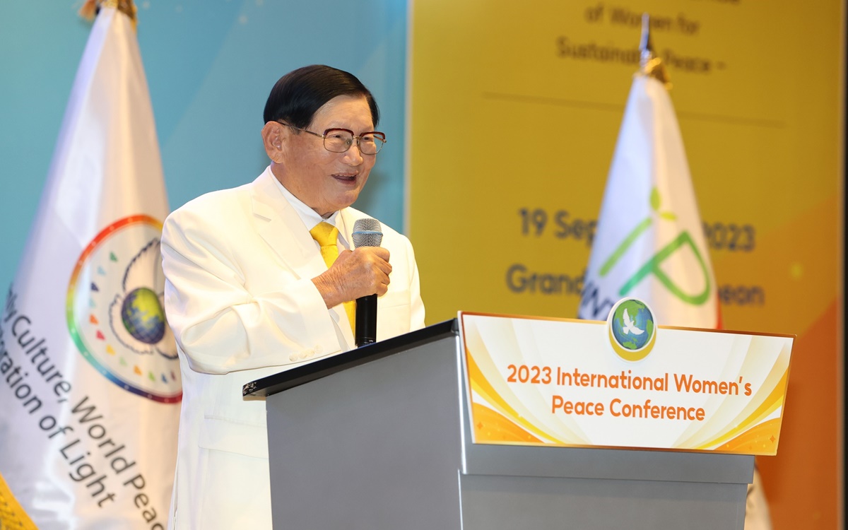 이날 오전 그랜드 하얏트 인천 웨스트 타워 그랜드볼룸에서 열린 ‘2023 세계여성평화 콘퍼런스’에서 HWPL 이만희 대표는 개회사를 통해 “남녀노소를 불문하고 평화와 사랑 안에 하나가 되자는 말에는 이견이 있을 수 없다”며 “여성그룹도 HWPL 안에서 하나가 돼서, 온 세상에 평화의 빛을 비추자”고 독려했다.