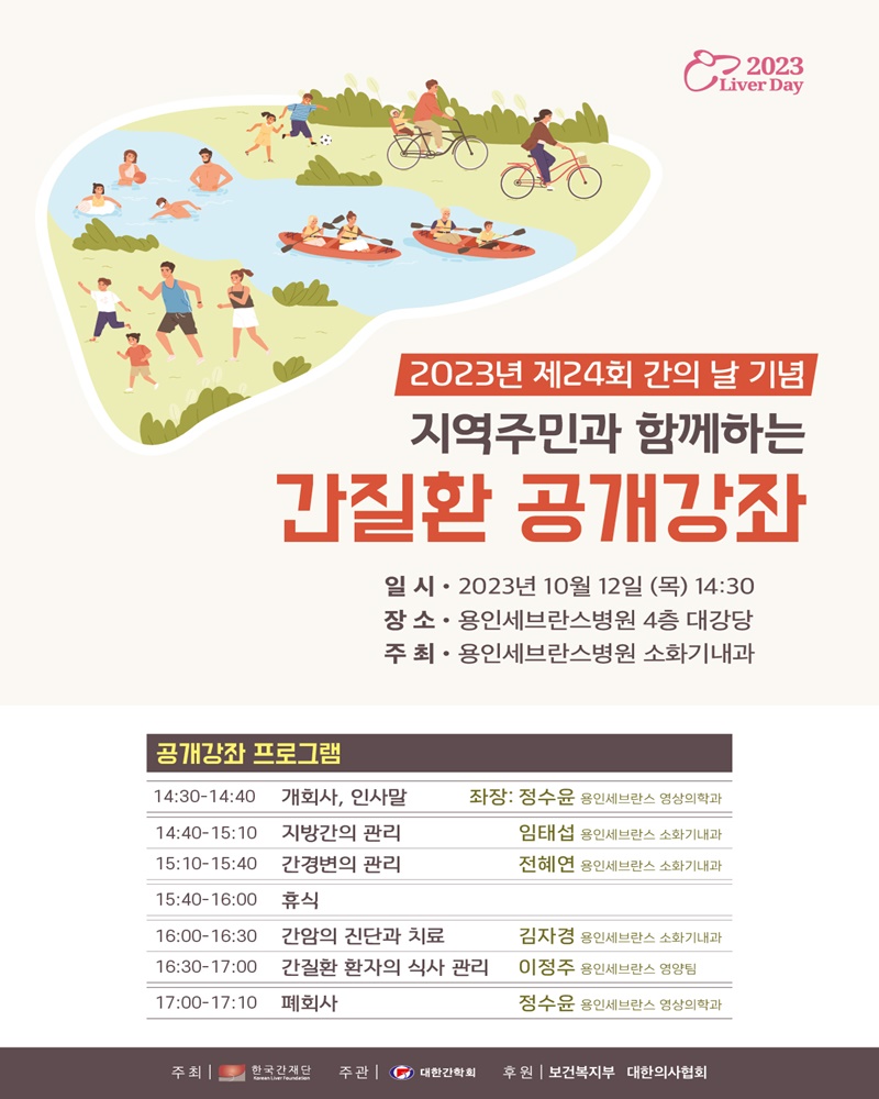 제24회 간의 날을 기념해 열리는 이번 강좌는, 용인세브란스병원 소화기내과 교수진과 영양팀 등에서 세부 프로그램을 준비했다.