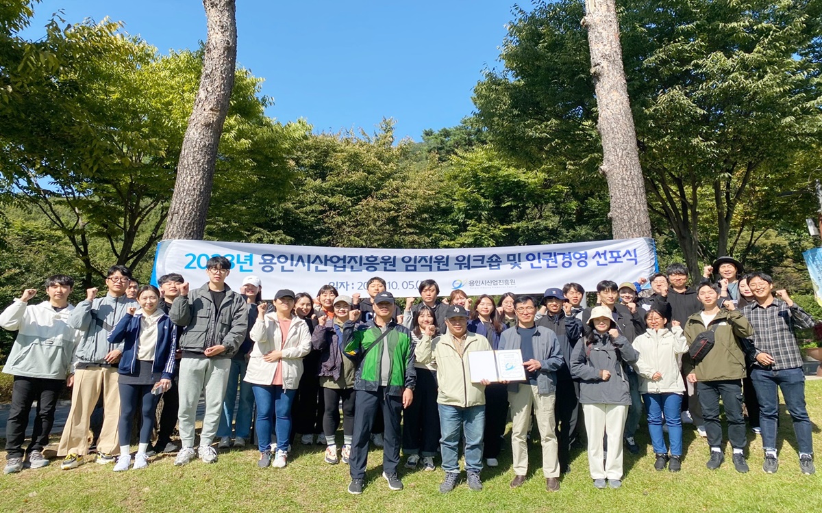 용인시산업진흥원(이사장 이상일, 이하 진흥원)은 지난 5일, 용인자연휴양림에서 임직원 워크숍을 추진한 가운데, 인간적 존엄성 보장을 주 내용으로 하는 인권경영 선포식을 개최했다.