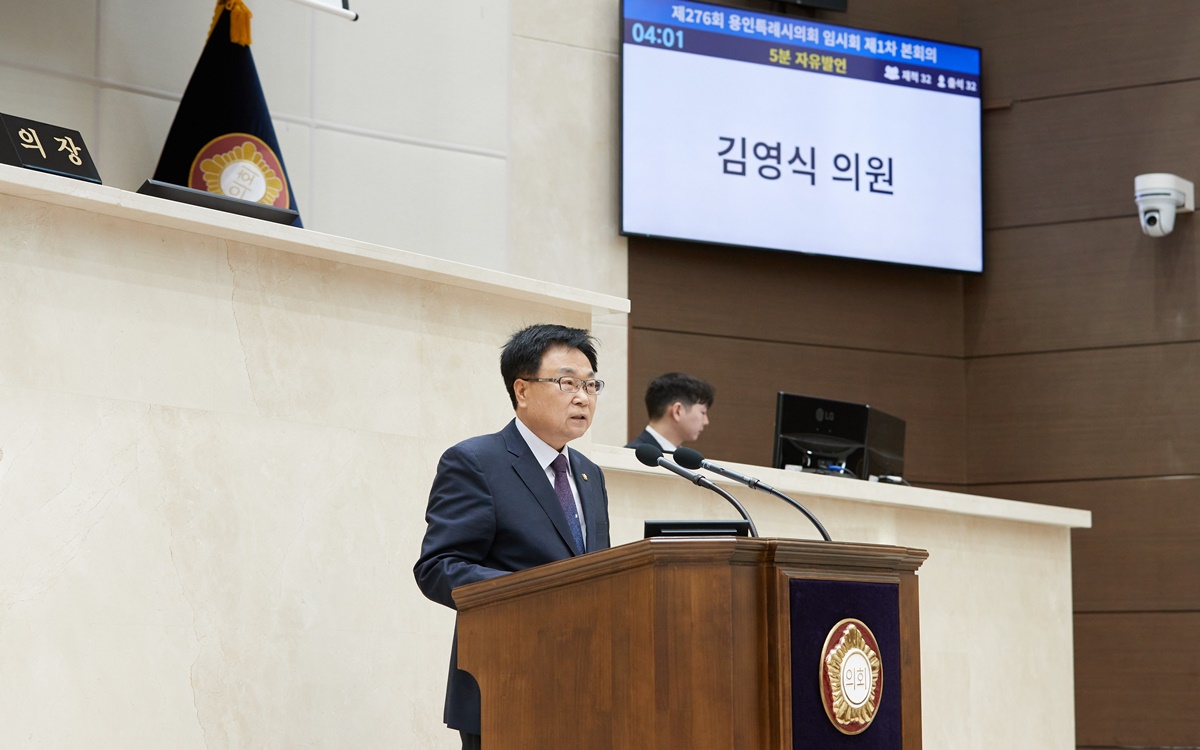 용인특례시의회 김영식 의원(양지면,동부동,원삼면,백암면/국민의힘)은 16일, 제276회 임시회 제1차 본회의 5분 자유발언을 통해, 처인구 도시정책 및 도로정책을 마련할 것을 촉구했다.