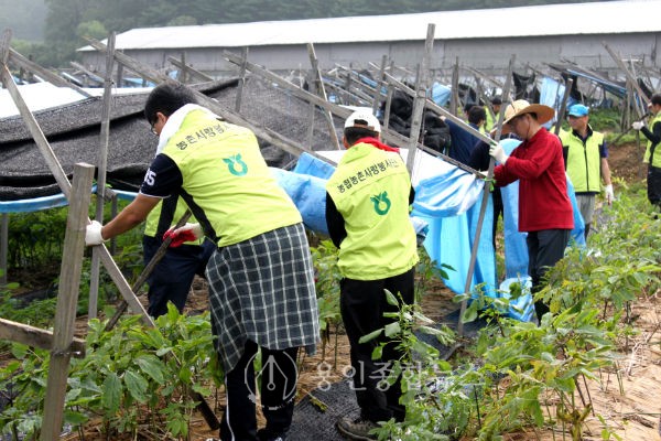 피해 농장주는 “농협 직원들이 내일처럼 두 팔 걷고 도움을 주어서 더 큰 피해를 막을 수 있었다.”고 말하며 용인관내 농협 농촌사랑봉사단에 감사의 마음을 전달했다.