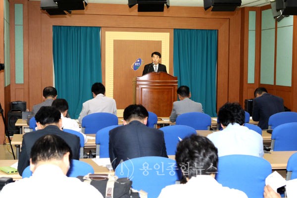 용인시(시장 김학규)는 3일 오전 10시 30분 시청 브리핑룸에서 민선5기 제4차 조직개편과 2013년도 본예산 편성 등 자치행정국(국장 송면섭) 주요 역점사업에 대한 출입기자와의 시정브리핑을 가졌다.