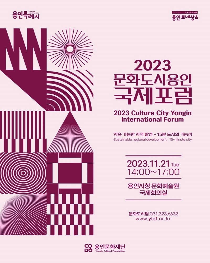 용인문화재단(이사장 이상일)은 오는 21일 용인시청 문화예술원 국제회의실에서, ‘지속 가능한 지역 발전-15분 도시의 가능성’을 주제로 ‘2023 문화도시 용인 국제포럼’을 개최한다.