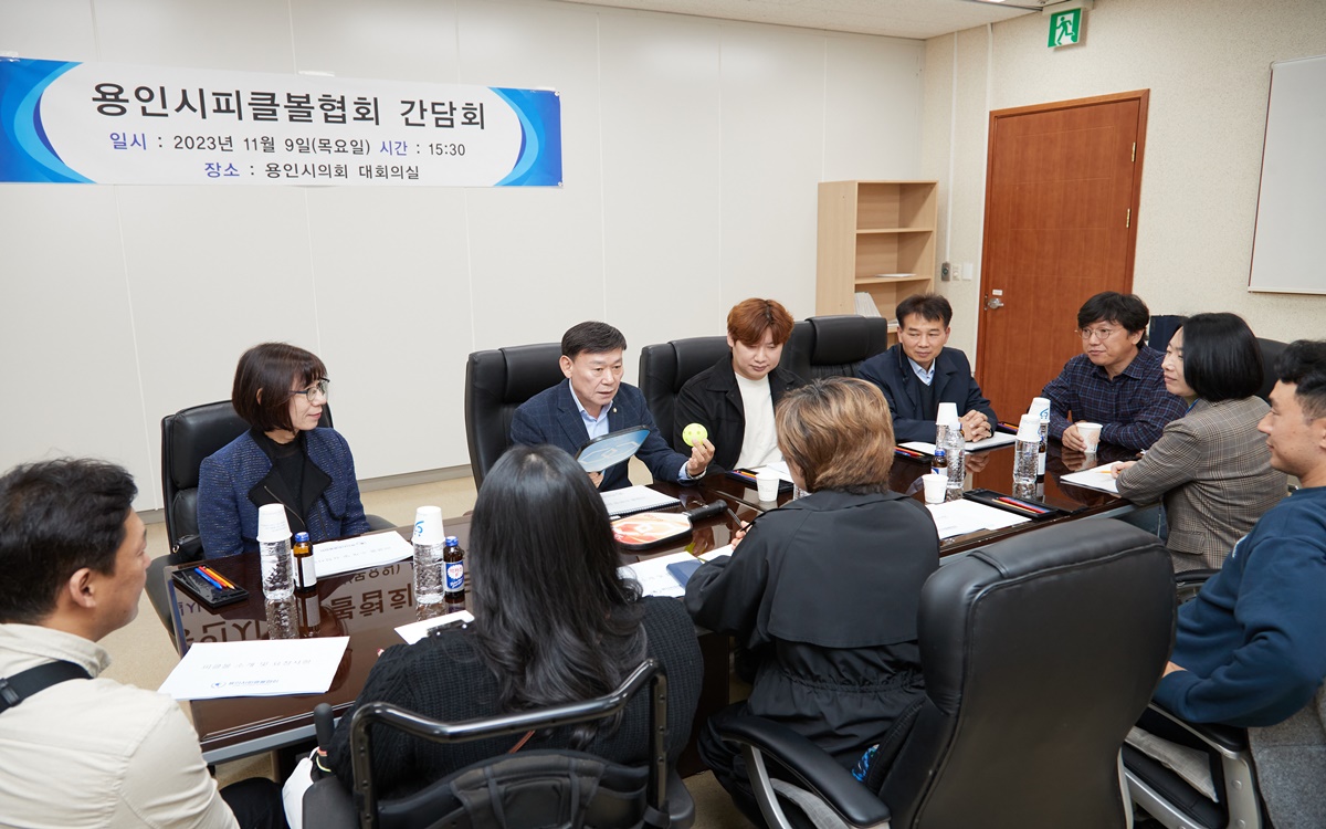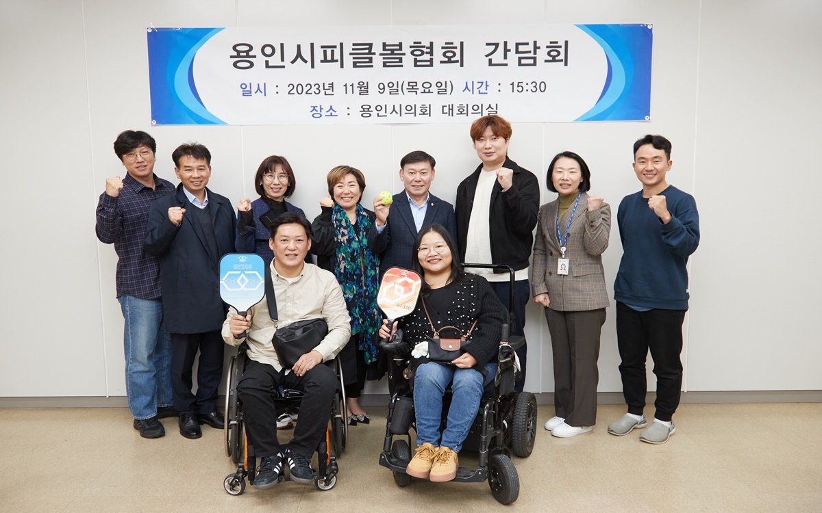 황재욱 위원장과 이상욱 용인특례시의원(더불어민주당) 및 용인시피클볼협회 관계자들이 참석한 이날 간담회에서는, 용인시민들이 피클볼을 이해하고 즐길 수 있는 방안에 관한 논의가 이뤄졌다.