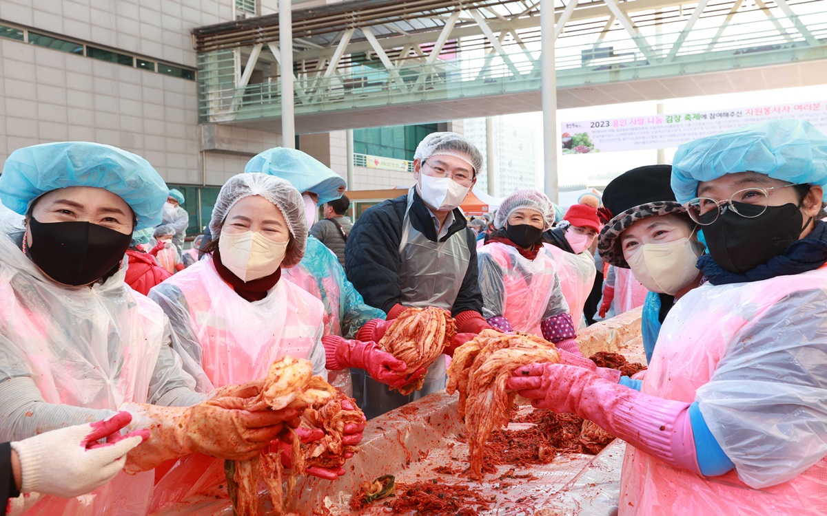 용인특례시(시장 이상일)는 14일 시청 광장에서, 용인시자원봉사센터 주관으로 열린 ‘2023 용인사랑나눔 김장축제’에 자원봉사자 350여명이 참여해, 김장 김치 7톤을 만들었다고 밝혔다.