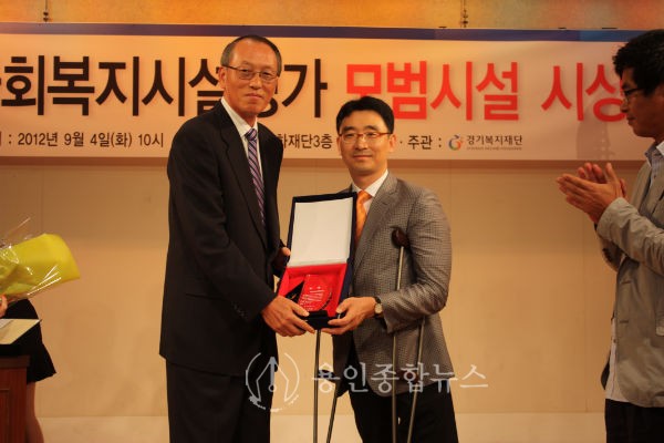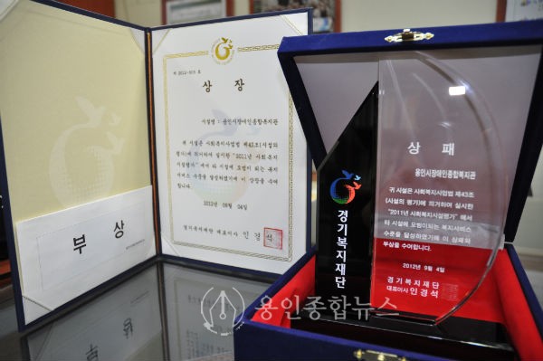 용인시장애인종합복지관(관장 정의철)은 보건복지부와 한국사회복지협의회가 실시한 “2011년 사회복지시설평가”에서 최우수(A)등급을 받은 것에 이어 경기복지재단에서 심사한 “2011년 사회복지시설평가 모범시설”로 선정되어 4일 시상식에 참석하였다.