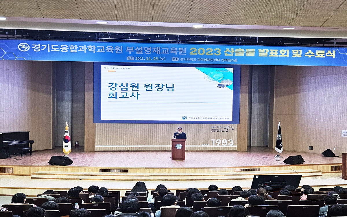 경기도융합과학교육원(원장 강심원)이 25일, 경기과학고등학교 과학영재연구센터 지하1층 컨퍼런스홀에서, 부설 영재교육원‘2023 연구과제 발표회 및 수료식’을 개최했다.