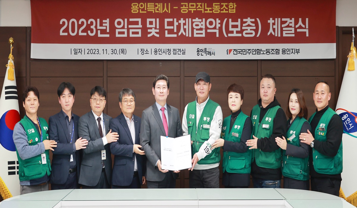 용인특례시(시장 이상일)는 시 소속 공무직 근로자를 대표하는, 전국민주연합노동조합 용인지부와 ‘2023년 임금 및 보충협약’을 맺었다고 1일 밝혔다.