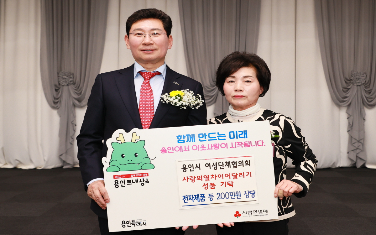 이날 (사)경기도여성단체협의회 용인시지회는 한부모 가족복지시설 지원을 위해, 200만원 상당의 물품을 시에 기탁했다. 기탁한 물품은 경기사회복지공동모금회를 통해, 지역 내 한부모가족복지시설을 지원하는 데 쓰일 예정이다.