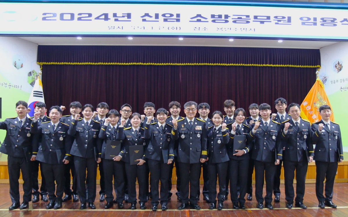 용인소방서(서장 안기승)는 2024년 갑진년 새해를 맞아 107만 용인특례시민의 안전을 지켜내고, 재난으로부터 자유로운 용인특례시를 만들어 갈 21명의 신임 소방공무원 임용식을 가졌다고 2일 밝혔다.