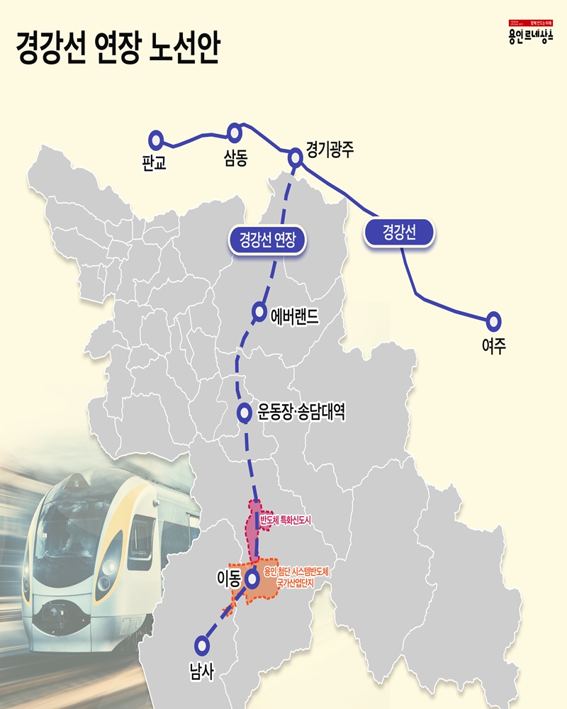 시가 추진하는 경강선 연장사업은 경기광주역에서 용인 에버랜드를 지나, 첨단 시스템 반도체 국가산단(226만평, 이동ㆍ남사읍)과 반도체 특화 신도시(69만평, 이동읍) 조성으로 용인의 반도체 거점이 될, 처인구 이동‧남사읍까지 37.97km를 복선 철도로 잇는 것으로 ‘반도체 국가철도’의 성격을 띠고 있다.