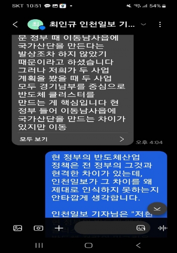 <현 정부의 반도체산업 정책은 전 정부의 그것과 현격한 차이가 있는데, 인천일보가 그 차이를 왜 제대로 인식하지 못하는지 안타깝게 생각합니다.