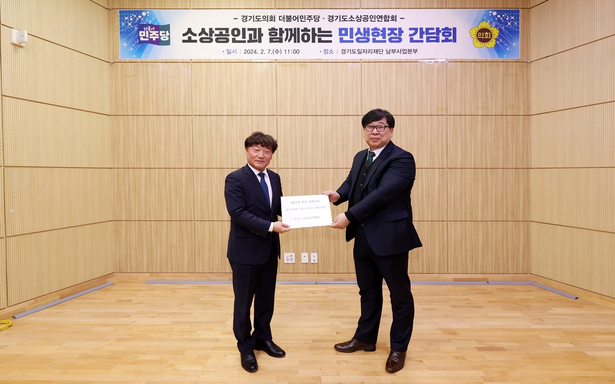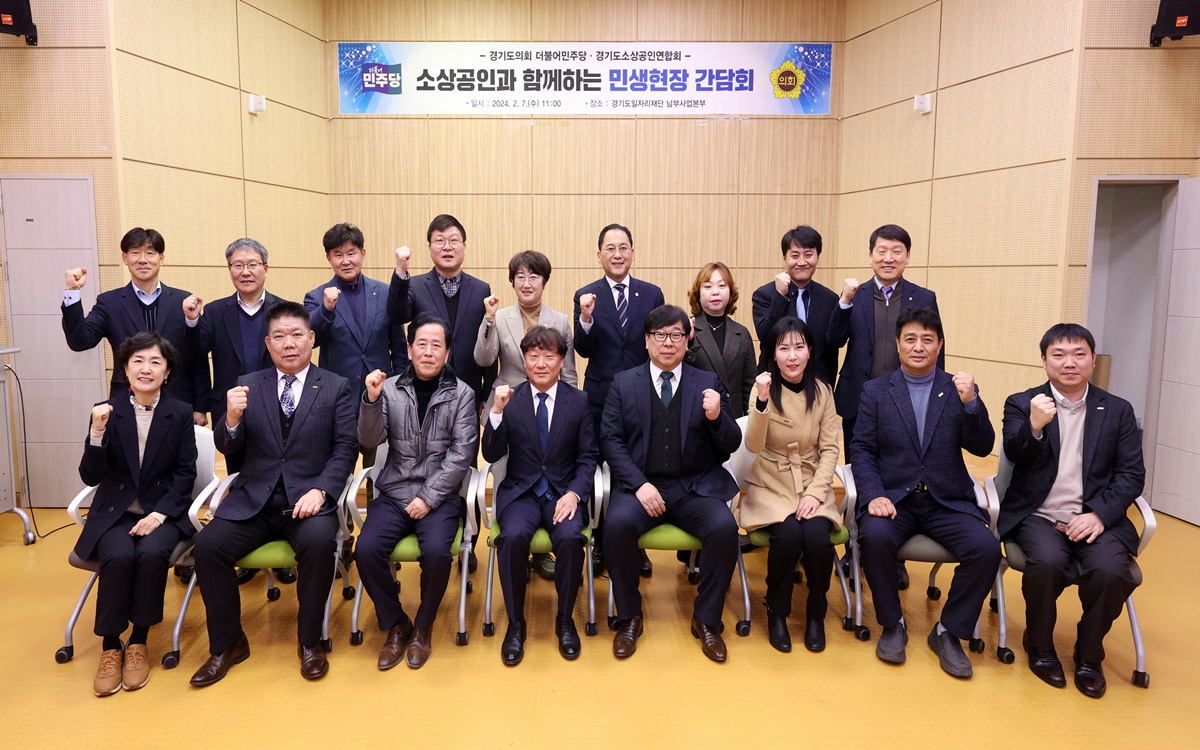 이날 간담회에는 남종섭 대표의원, 안광률 정책위원장(시흥1), 고은정 기획수석(고양10), 전자영 청년지원단 부단장(용인4) 등이 참석했으며, 이상백 경기도 소상공인연합회장, 김창석 부회장, 최혜경 총무이사 등을 비롯한 도내 소상공인들이 함께했다.