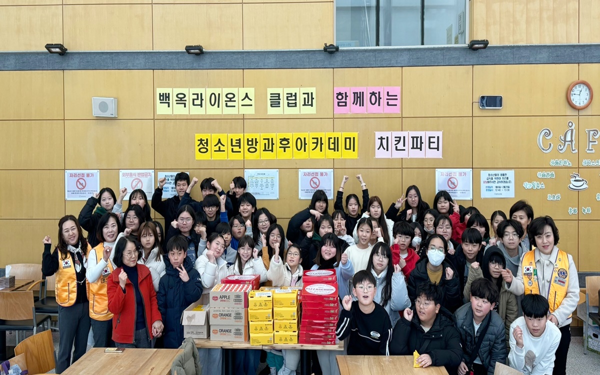 이날 백옥라인온스클럽은 피자, 치킨, 음료 등 청소년이 선호하는 음식을 준비해 함께 나누는 시간을 가졌다.