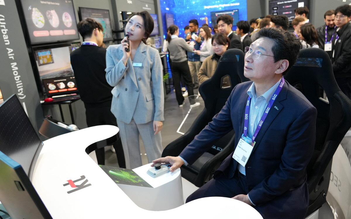 KT관과 SK텔레콤관에서는 양사가 2025년 상용화할 계획인 도심항공교통(UAM)에 대한 설명을 듣고 시뮬레이션을 보거나 가상 체험을 하기도 했다.