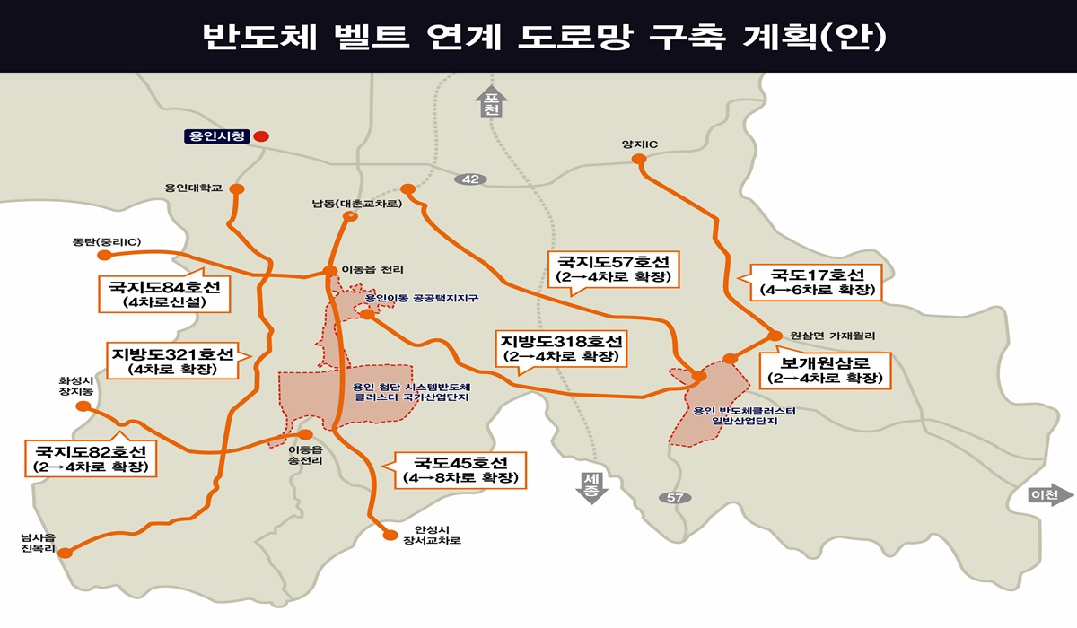 용인특례시(시장 이상일)가 첨단 시스템반도체 국가산단과, 용인반도체클러스터 등 반도체 벨트 연계 도로망 구축 사업에 박차를 가하고 있다.