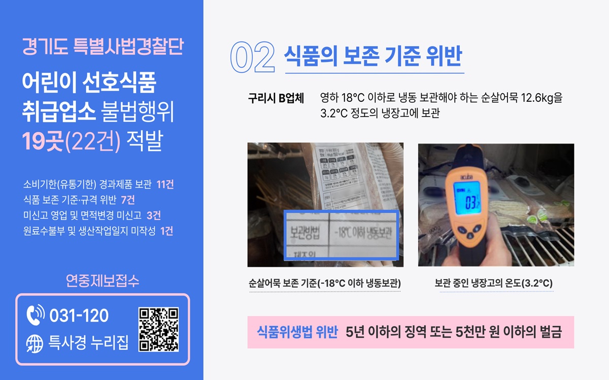 경기도 특사경, 어린이 선호식품 취급업소 불법행위 19곳 적발
