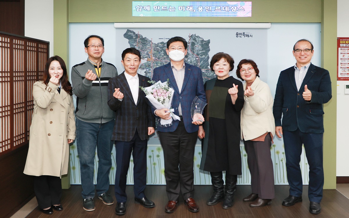 이상일 용인특례시장이 28일 소상공인의 어려움을 헤아려, 상가 주변 불법주정차 단속 시간을 한시적으로 유예한 데 대한 보답의 뜻으로, 구갈상점가 상인회로부터 감사패를 받았다.