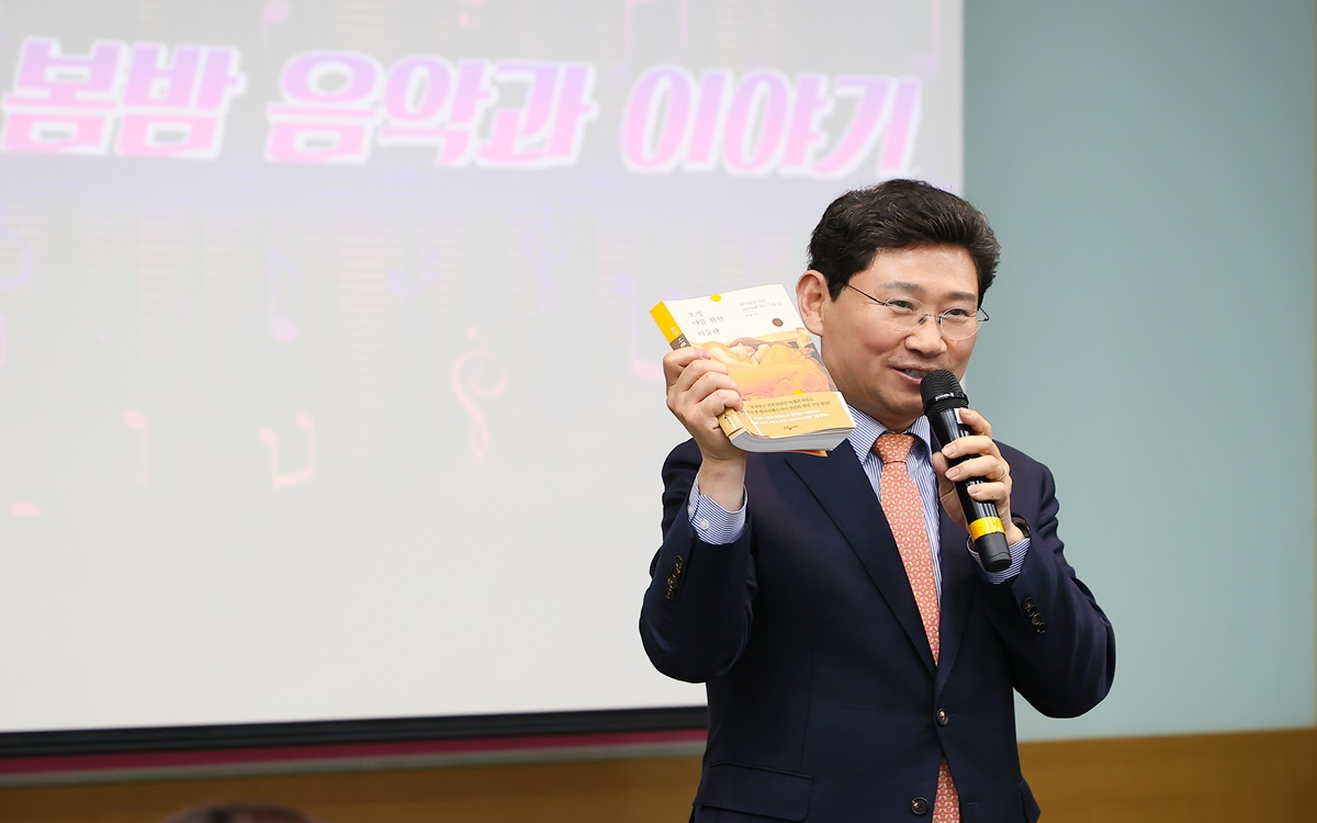 용인특례시는 2024년 도서관의 날·도서관 주간 기념행사로 12일, 기흥도서관 시청각실에서 정여울 작가, 예술 커뮤니티 아르케컬처(archeculture)와 함께 '봄밤 음악과 이야기' 북콘서트를 열었다.