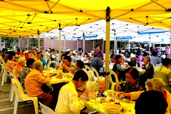 10년째 이어 열리는 경로잔치는 지역 어르신과의 ‘행복한 만남’이라는 주제로 개최 됐으며, 올해도 특별 건강보양식으로 준비한 산삼(장뇌삼) 삼계탕 점심식사와 함께 축하공연, 이·미용 봉사와 함께 기념선물을 증정, 효의 의미를 되새기는 한마당 축제의 행사로 진행됐다.