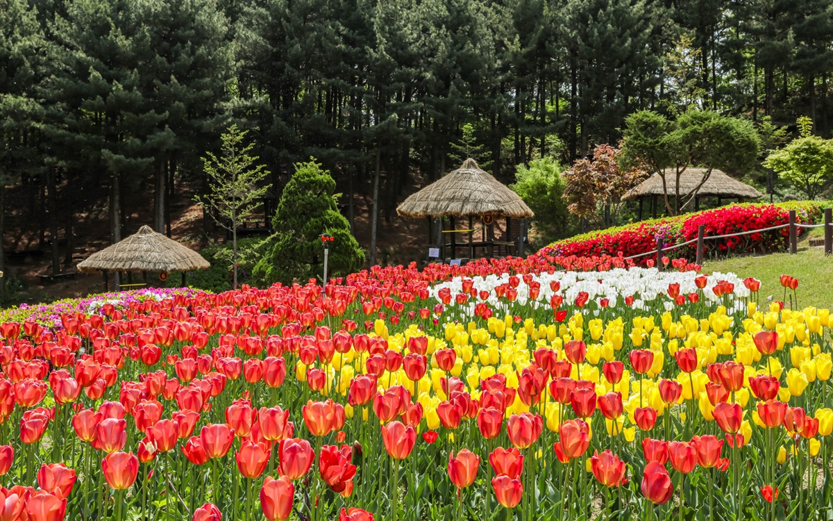 들꽃 광장에는 튤립 3종, 총 1만 2000본을 심고, 바람의 언덕 정원에는 금잔화, 퍼플팬지, 디기탈리스, 크리산세멈 등을 군집 식재해 화려한 꽃 물결을 수놓았다.