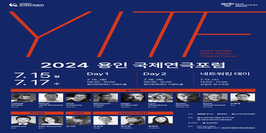 7월 15일부터 17일까지 3일간 용인문화재단 이벤트홀에서 국제예술교류의 방향성을 논의하는 ‘2024 용인 국제연극포럼’이 개최된다.