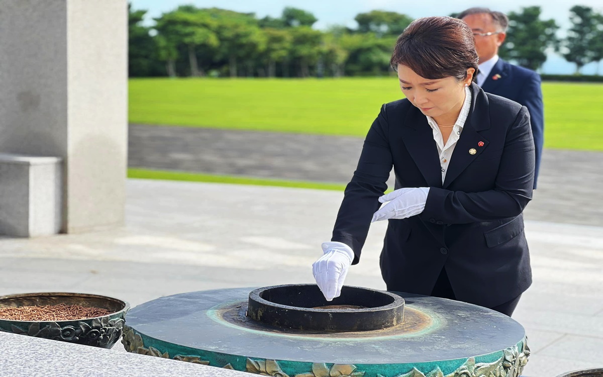 이언주 최고위원 후보는 제주도 첫 공식 일정으로 이른 아침부터 제주4·3평화공원을 참배하고, 숭고한 호국정신을 기리고 희생자의 넋을 위로하고, 43 유족회 회장 등을 만나 간담회를 가졌다.