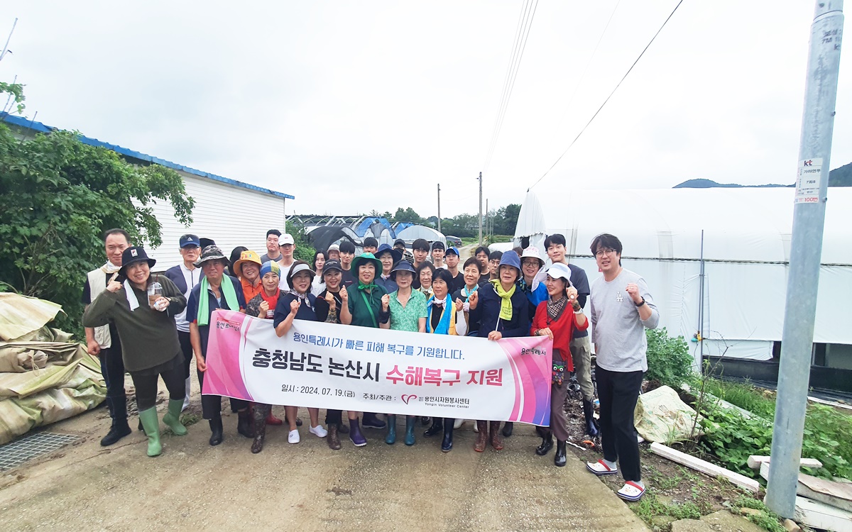 이번 수해복구는 용인시 자원봉사단체, 재난‧재해자원봉사단, 2030용인청년봉사단 40여명과 함께 인구 감소지역인 논산시의 수해 현장 일손 부족 해소와, 신속한 수해 현장의 복구를 위하여 피해를 입은 딸기 하우스 농가의 토사물 및 진흙 제거 활동을 전개하였으며, 실의에 빠진 농가들이 속히 일상생활 복귀를 염원하는 마음으로 구슬땀을 흘리며 일손을 도왔다.