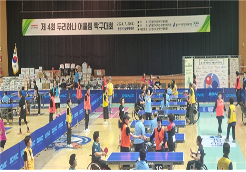 용인도시공사(사장 신경철) 교통사업처는 지난 20일 용인시처인장애인복지관에서 주최하는, 제4회 두리하나 어울림 탁구대회에 임직원 20여명이 자발적으로 자원봉사자로 참여했다고 밝혔다.