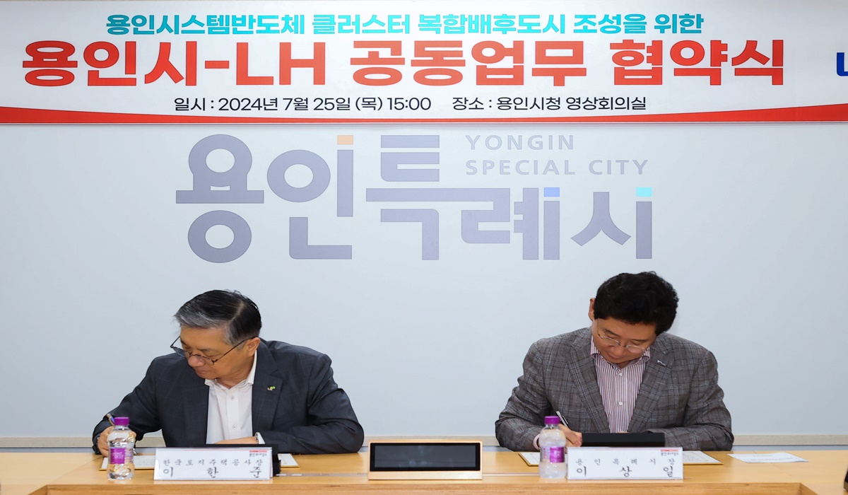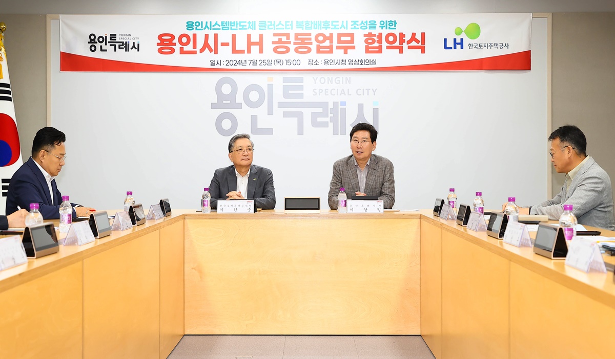 용인특례시(시장 이상일)는 25일 오후 영상회의실에서, 한국토지주택공사(이하 LH)와 ‘용인 첨단시스템반도체 클러스터 미래형 복합 배후도시 조성을 위한 공동 업무협약’을 체결했다고 26일 밝혔다.