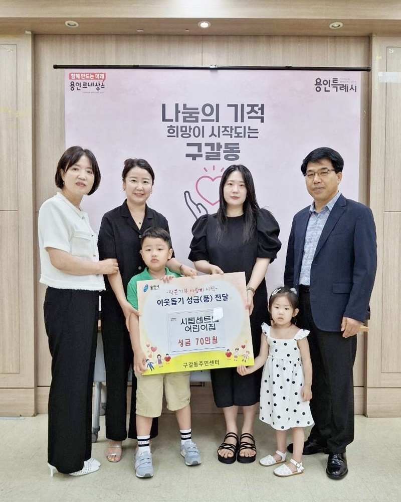 기흥구 구갈동은 24일 시립센트럴어린이집(원장 전정란)에서 ‘아나바다시장 놀이’ 판매 수익금 70만원을 기탁했다고 밝혔다.