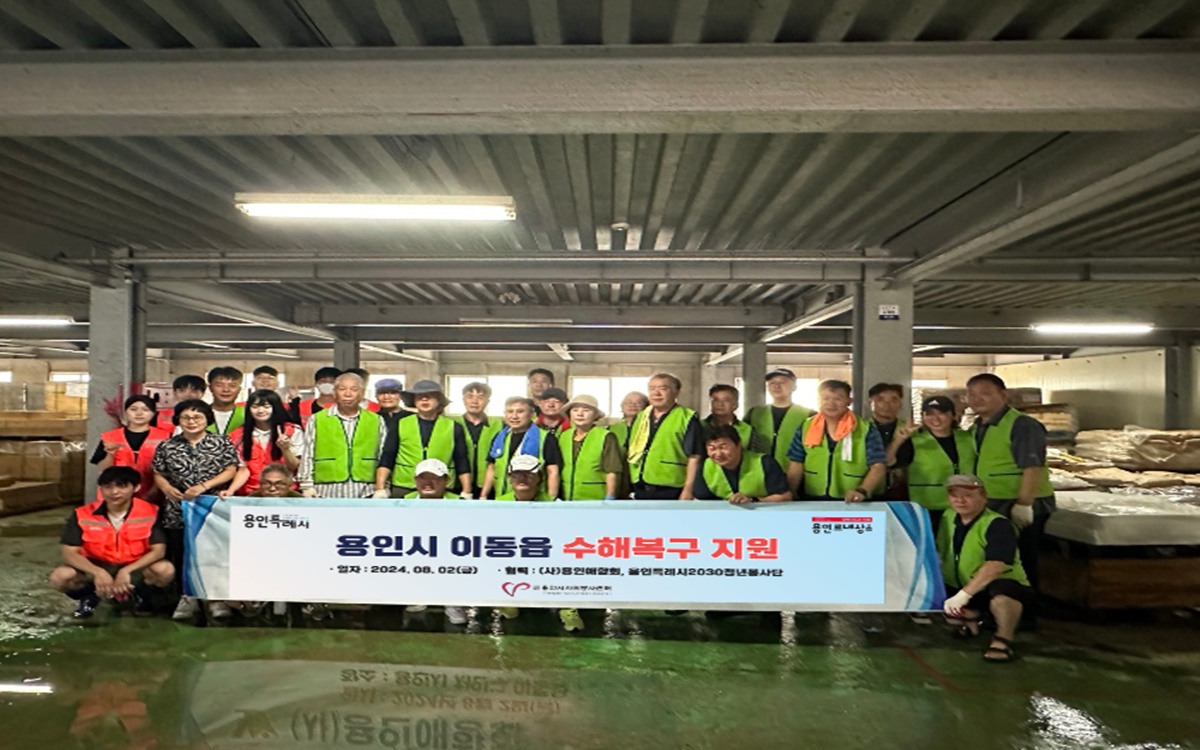 이날 활동은 (사)용인애향회 및 용인특례시 2030청년봉사단 총 27명이 함께, 물류 창고의 침수된 물건을 정리하고, 주변 정비 작업 등을 진행하여 수해 복구에 전력을 다했다.