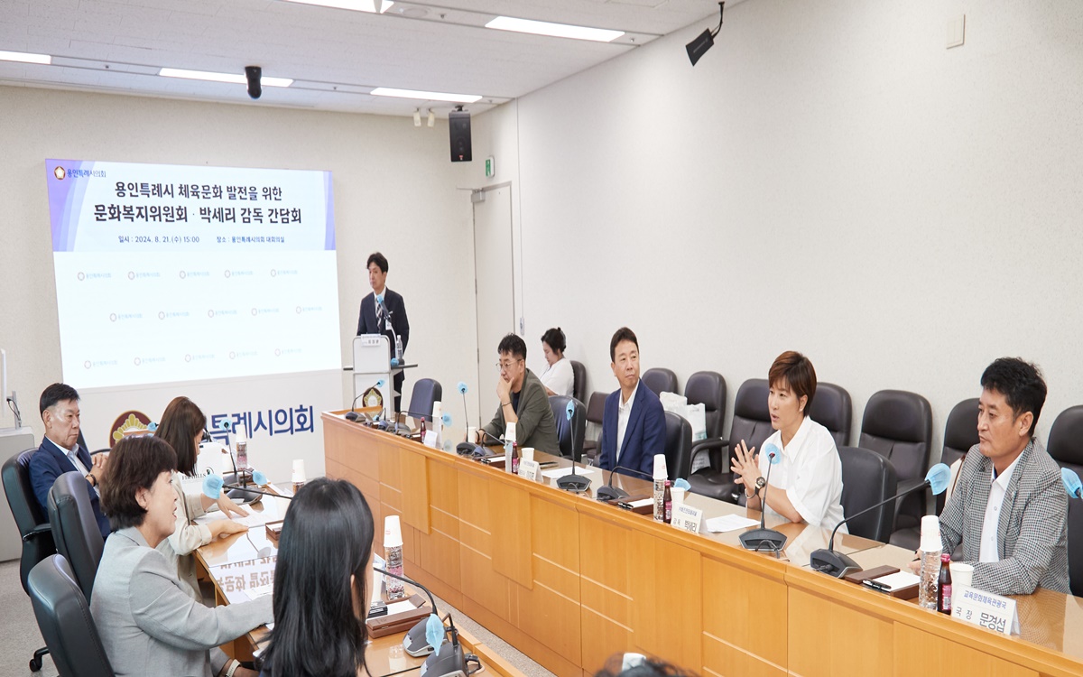 용인특례시의회 문화복지위원회(위원장 김상수)는 21일, 의회 대회의실에서 용인특례시 체육문화 발전을 위한 박세리 전 감독과의 간담회를 개최했다.