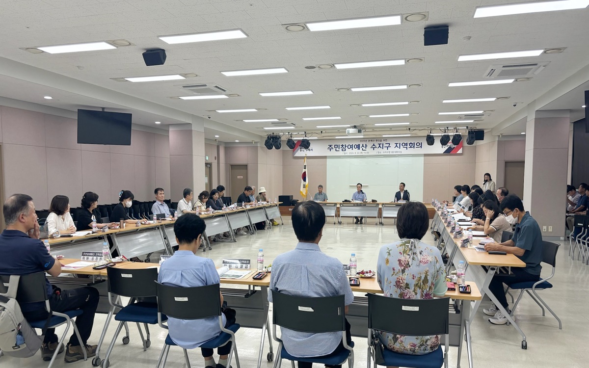 지역회의에는 이영민 수지구청장과, 주민참여예산 수지구 지역회의 위원 34명이 참석해 내년도 예산 편성에 반영할 수지구 현안을 논의했다.