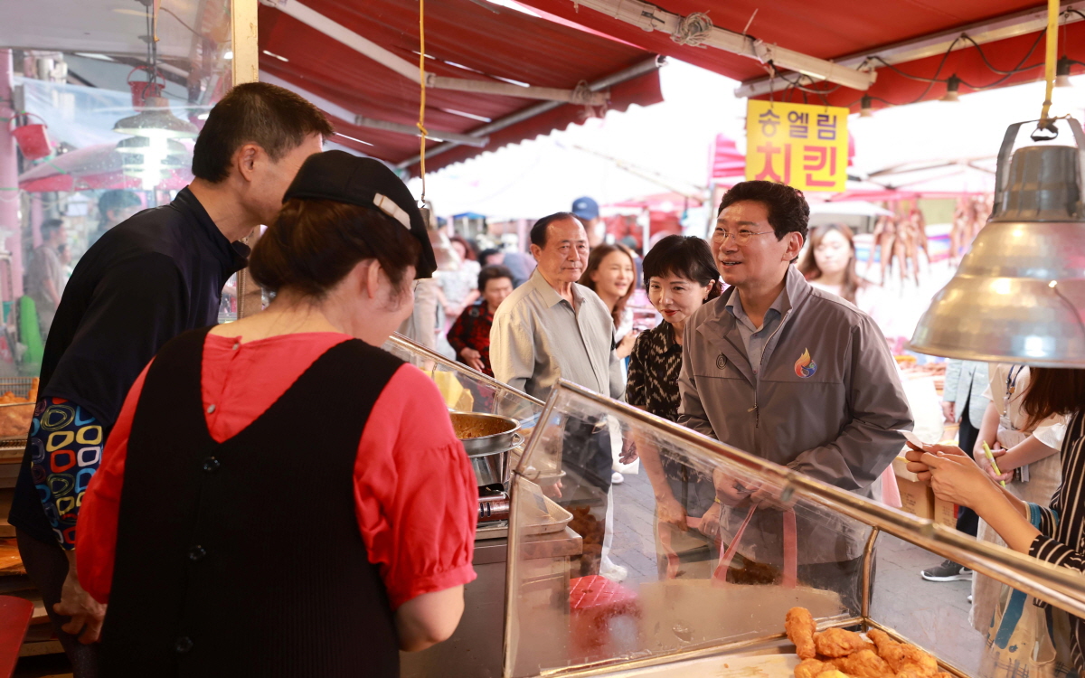 이 시장은 땅콩, 강정, 표고버섯, 참‧들기름, 깨, 떡, 과일, 전, 닭강정 등을 구입했다. 장을 보며 만나는 상인들과 시민들에게는 일일이 “추석 명절 다복하고 즐겁게 보내시길 바란다”며 인사를 하고 상인들의 애로사항도 들었다.