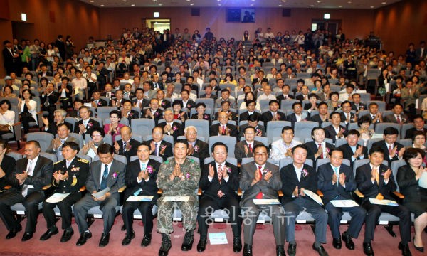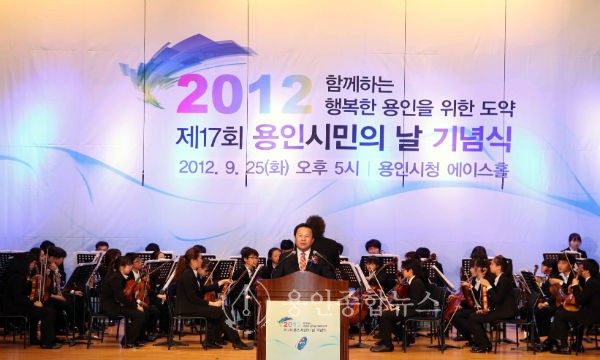 용인시(시장 김학규)는 25일 오후 5시 시청 에이스홀에서 김학규 용인시장, 이우현, 김민기, 한선교국회의원, 이우현 용인시의회 의장을 비롯해 주요 내빈, 시민 등 600여명이 참석한 가운데‘제17회 용인시민의 날’행사 기념식을 가졌다. 이날 행사는 용인시의 재정위기 극복에 동참하고자 기존의 축제성 행사를 배제하고 간소하게 기념식과 시립예술단 축하공연으로 진행되었다.