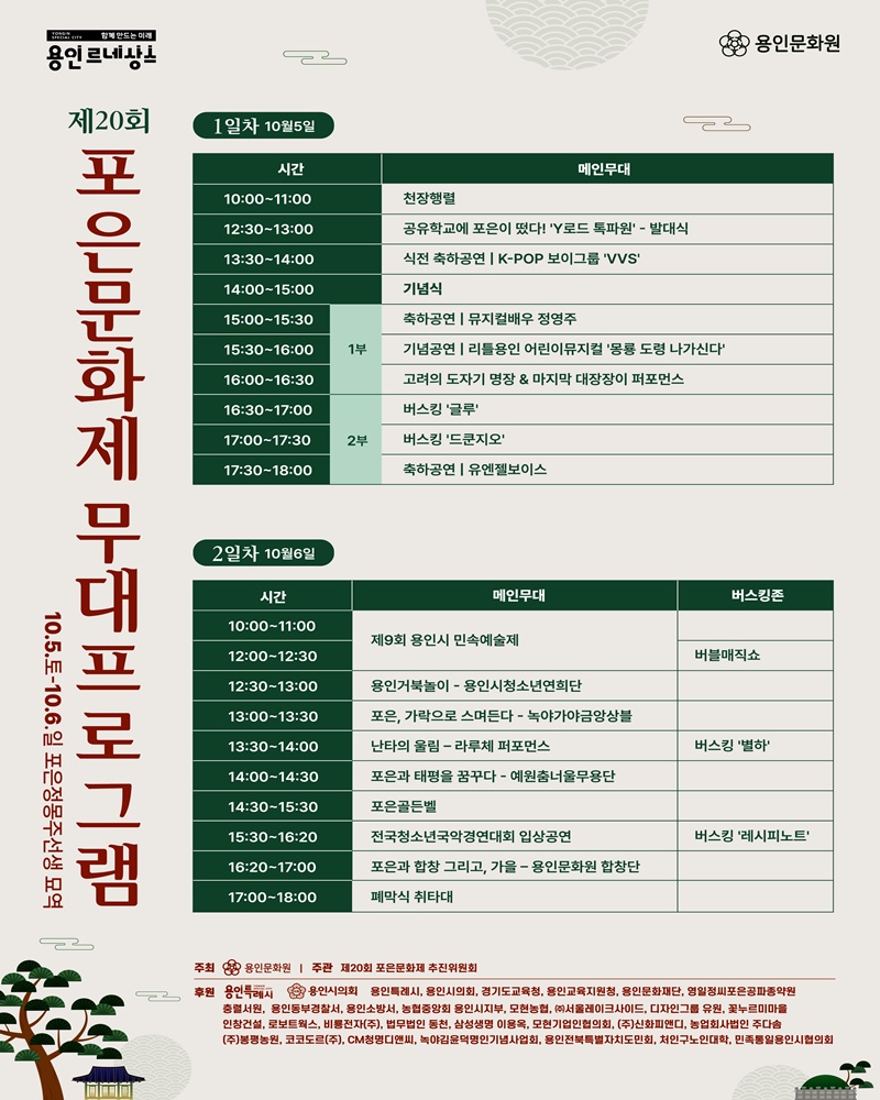 용인문화원 최영철 문화원장은 “제20회 포은문화제는 전통문화의 소중함을 새롭게 느끼면서도, 미래 지향적인 문화 행사로 자리매김할 수 있도록 다양한 프로그램 기획에 심혈을 기울였다”며, “많은시민들이 이번 문화제를 통해, 전통의 가치와 매력을 경험하시길 바란다”고 전했다.