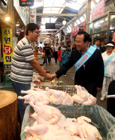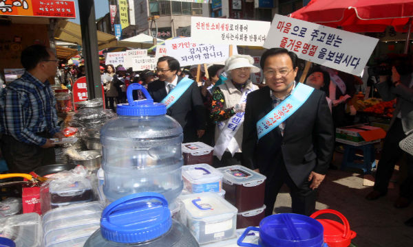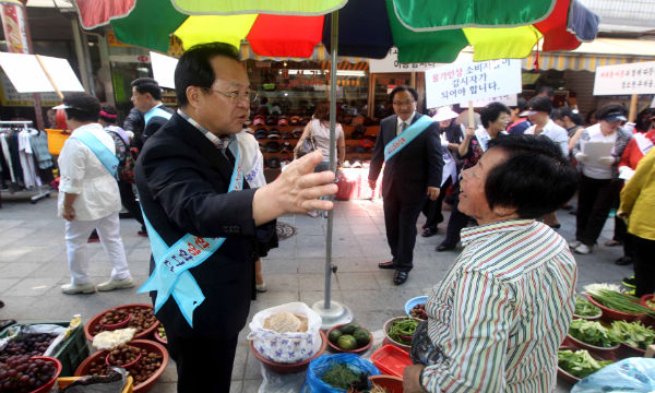 이날 김학규 시장은 관계공무원, 용인중앙시장상인회 관계자 등과 용인중앙시장 중앙로, 잡화상가, 떡 골목 등 점포를 방문하고 상인들과 환담했다. 특히 서민들이 전통시장에서 제수용품 등 추석 성수품을 구입할 수 있도록 독려하기 위해 용인시가 추진하는 추석 물가관리 특별대책 등에 대해 설명하고 장바구니 물가 안정에 협조해줄 것을 당부했다.