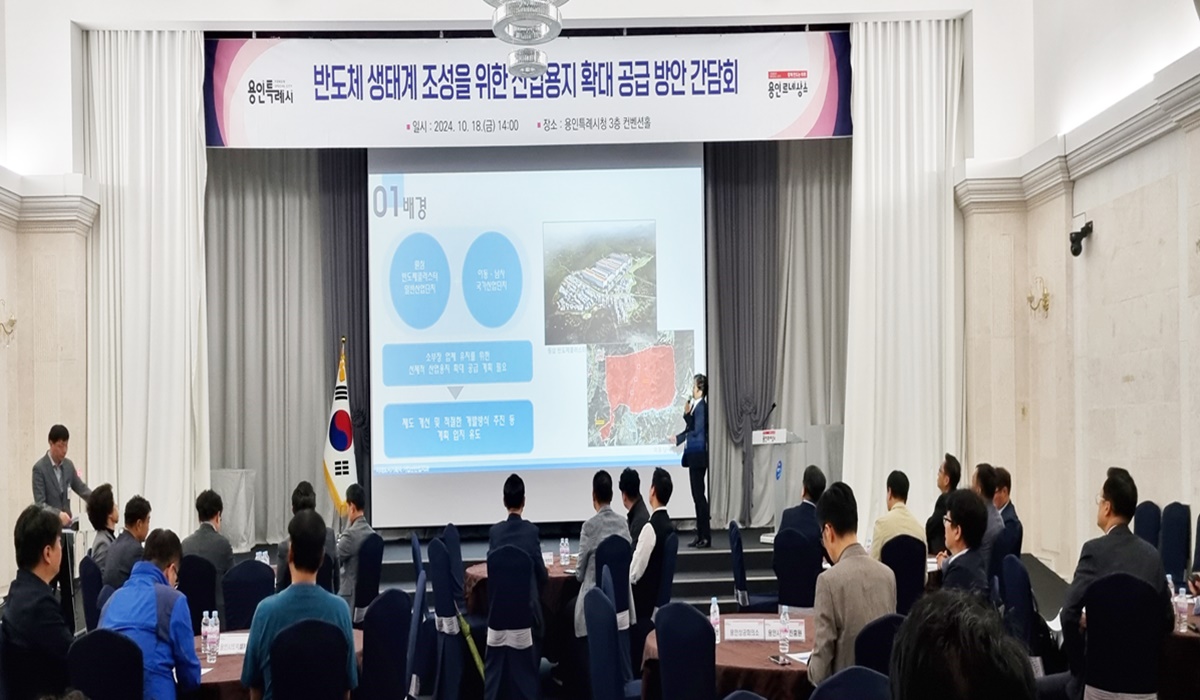 용인특례시(시장 이상일)는 지난 18일 시청 컨벤션홀에서, 반도체 소재·부품·장비 기업 유치와 반도체 생태계 조성에 필요한 산업용지 확대 공급을 위해 간담회를 열었다고 22일 밝혔다.