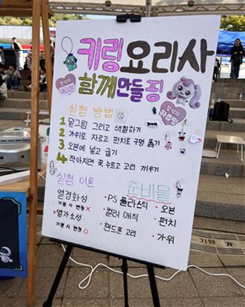 용인이 조아용 동아리가 운영한 부스는 ‘나의 꿈을 그려보자! 나만의 열쇠고리 만들기!’이다.