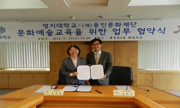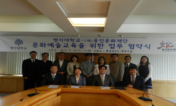업무협약식에는 용인문화재단 김혁수 상임이사를 비롯하여 명지대학교 김영순 부총장 등 10여 명이 참석했다.